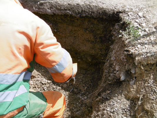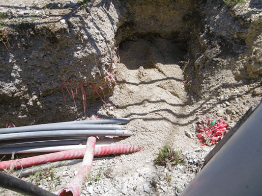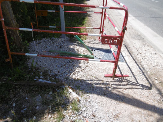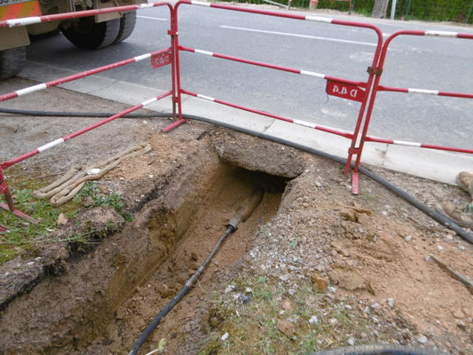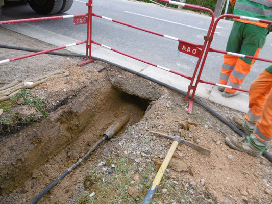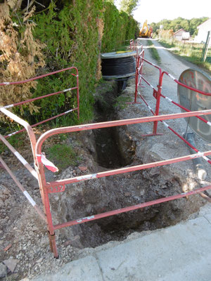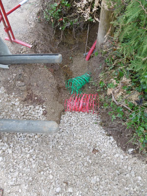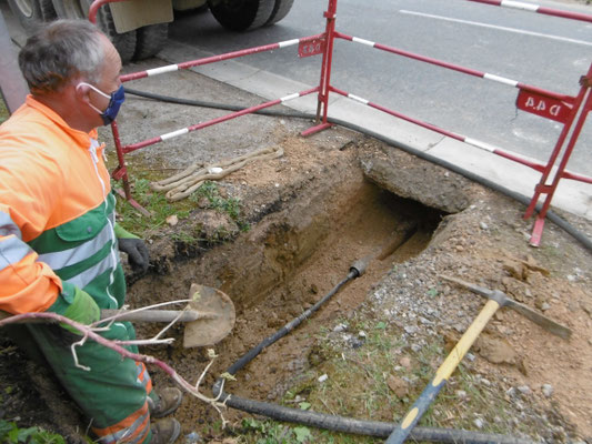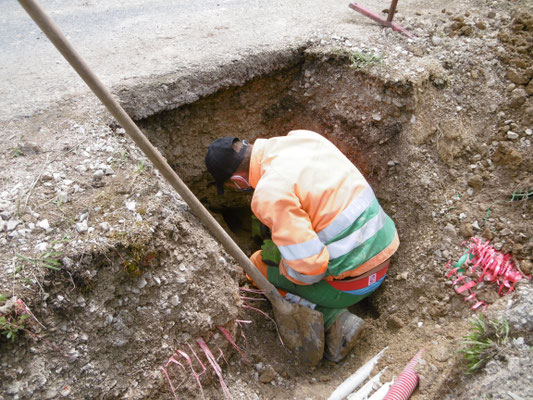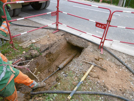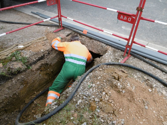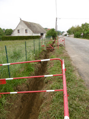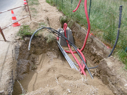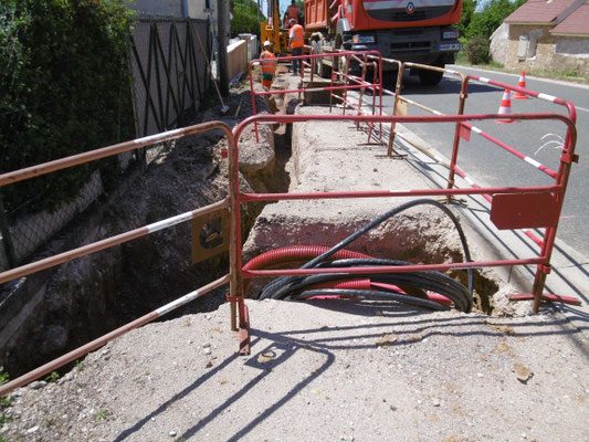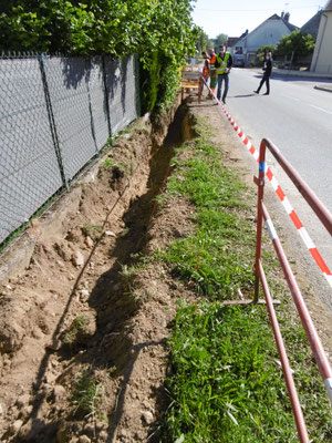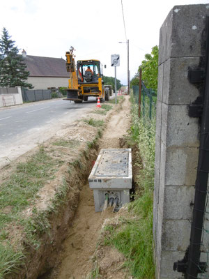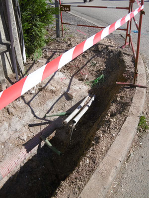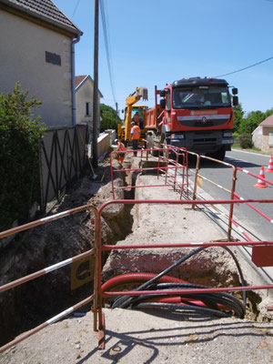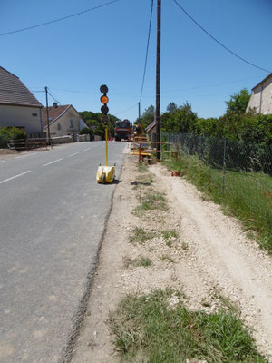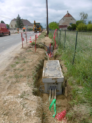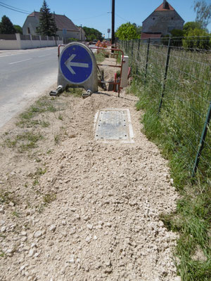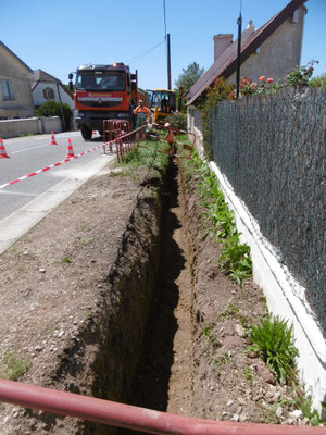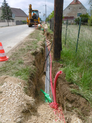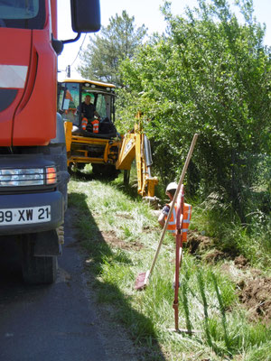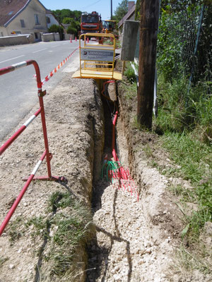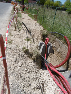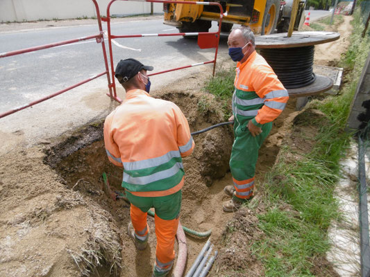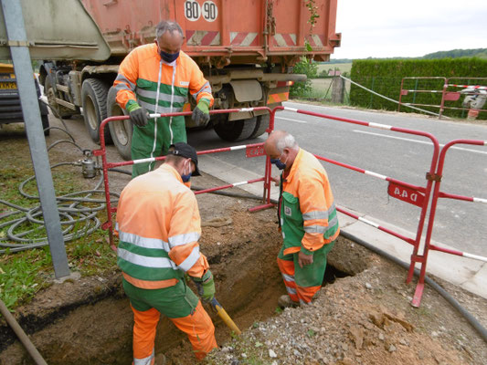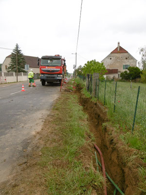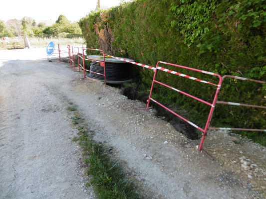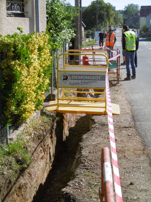 14 Mai 2020: L' entreprise DEMONGEOT effectue une traversée de la chaussée en souterrain pour y passer 3 gaines en pvc.