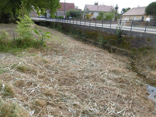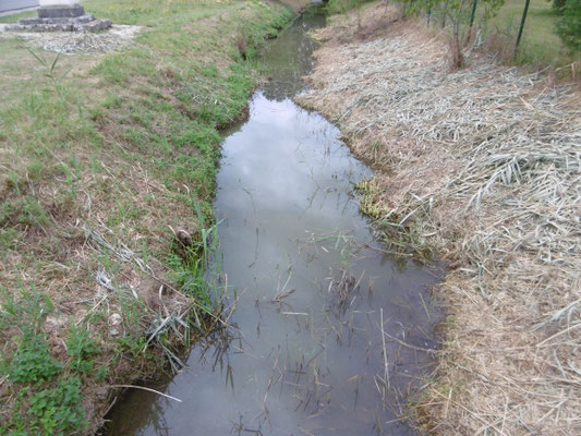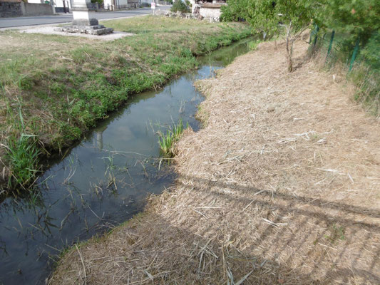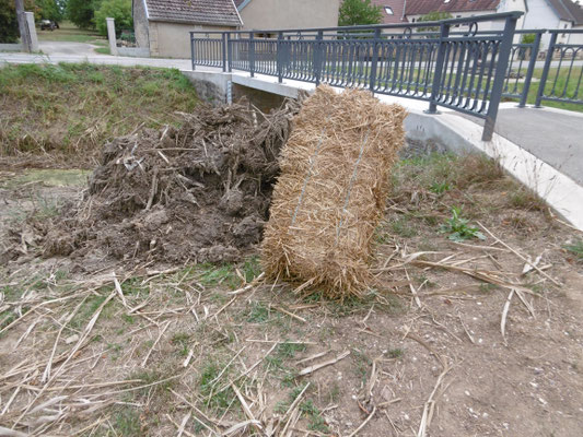 Un barrage a été fait avec des bottes de paille en cas de pollution.