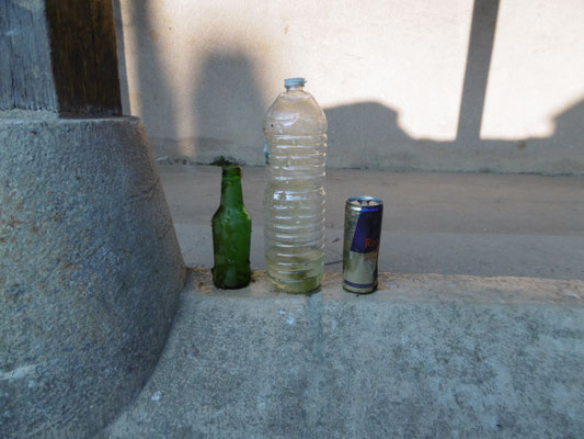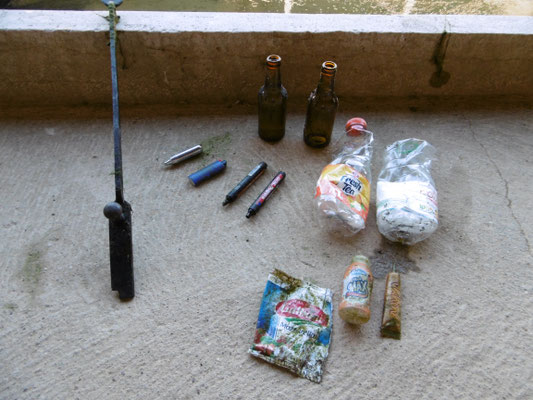 Déchets trouvés: Bouteilles, canettes et billes en plastique.