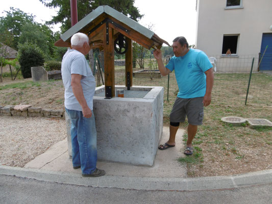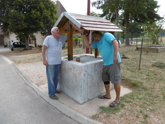 10 Août 2020: Application d'une couche de lasure sur le puits de la Tuilerie par Gilles et Jo,