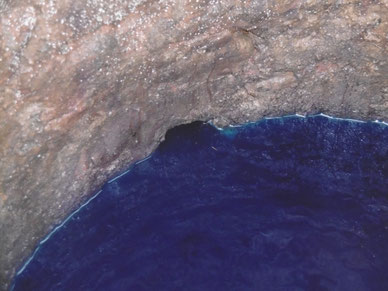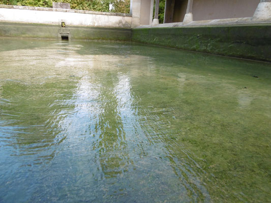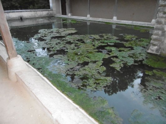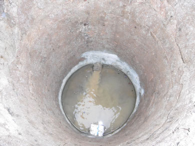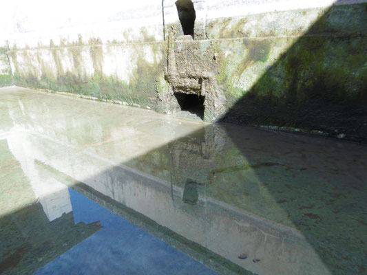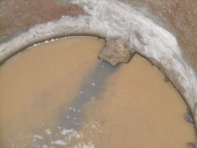 Le puits intermédiaire. La source débite, on aperçoit un léger courant...Nous attendons l'arrivée du bleu de méthylène.
