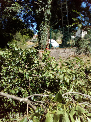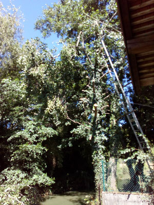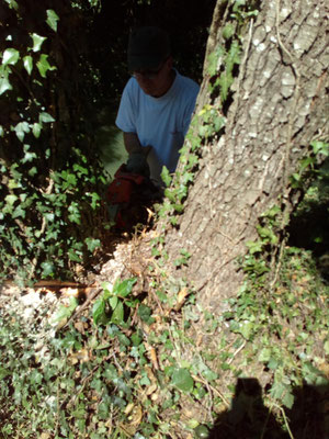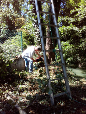 05 Août 2020: Abattage d'un aulne " verne " en bordure du Nacey par Pascal et Olivier,