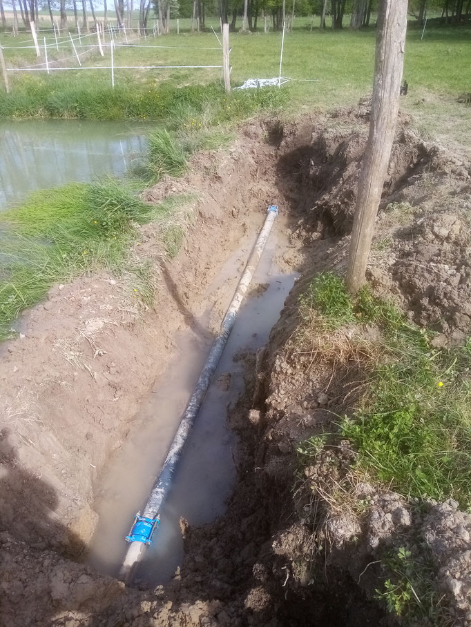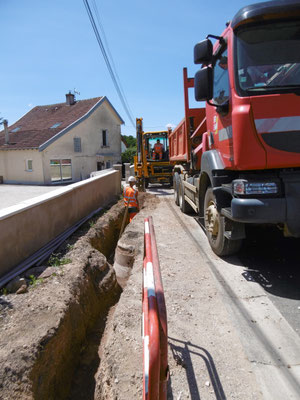 La fuite est repèré, intervention de Stéphane DUREY, Martial P. Noël B. Pierre V. et Mr CHENILLOT de Brans pour remplacer la conduite en grès cassée, par un tuyau en pvc sur une longueur de 5m.