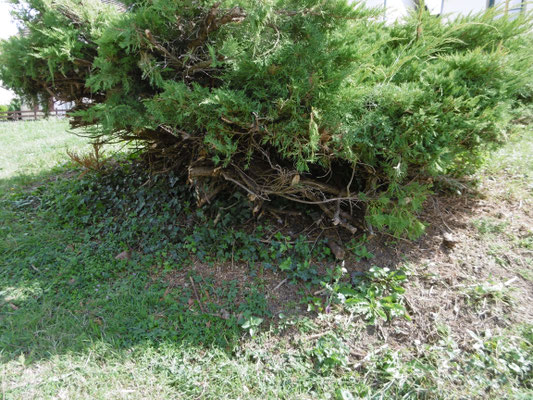 06 Août 2020; Désherbage autour de la Vierge par Ginette.