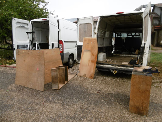 12 Octobre 2020: Poursuite de l'aménagement intérieur du camion communal par Pascal et Pierre.
