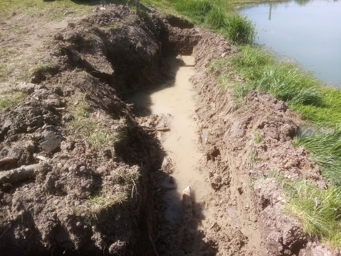 Canalisation entre les 2 puits.Le bleu de méthylène est présent.